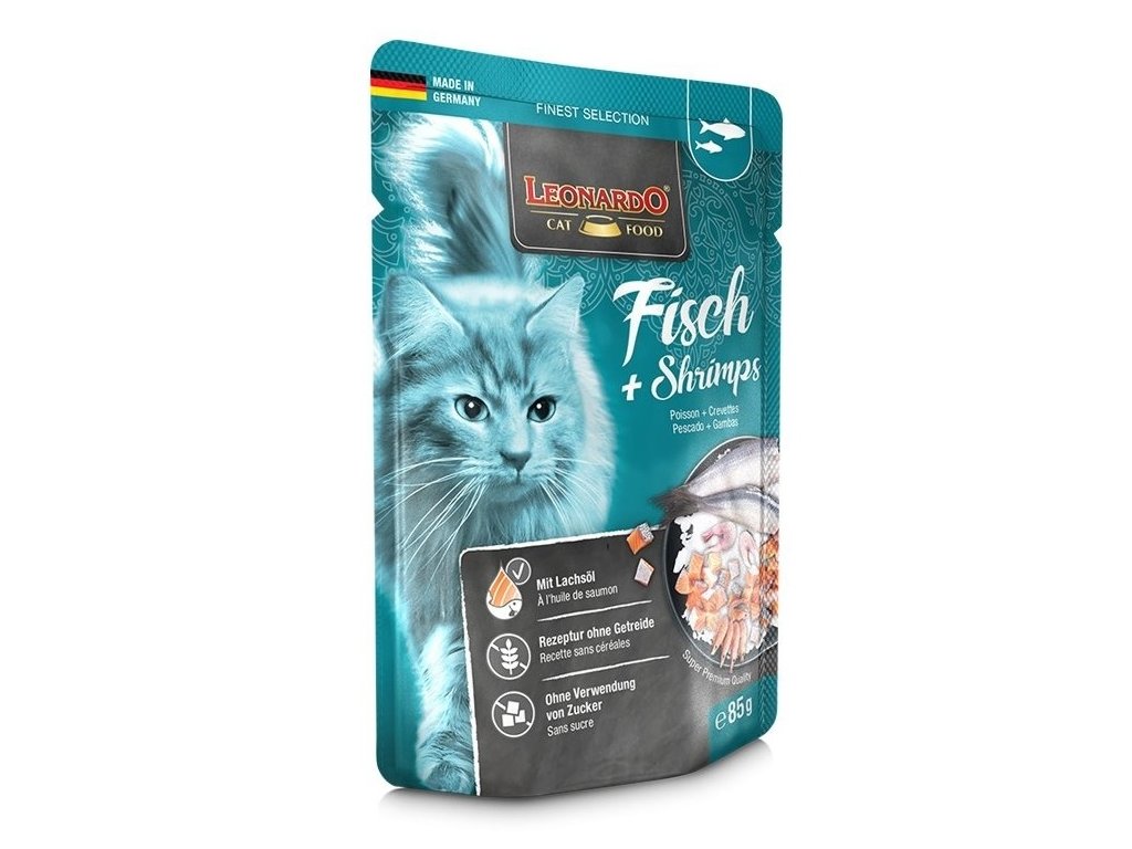 S produktovou řadou taštiček “Finest Selection“ doplňuje německý výrobce krmiva Leonardo firma BEWITAL svou řadu vlhkých krmiv pro kočky. Vysoce kvalitní receptury obsahují šetrně vařené šťavnaté maso a pečlivě vybrané suroviny potravinářské kvality. Obsažený lososový olej poskytuje hodnotné Omega 3 nenasycené mastné kyseliny. Taštičky je také možné míchat s granulovanými superprémiovými krmivy Leonardo.