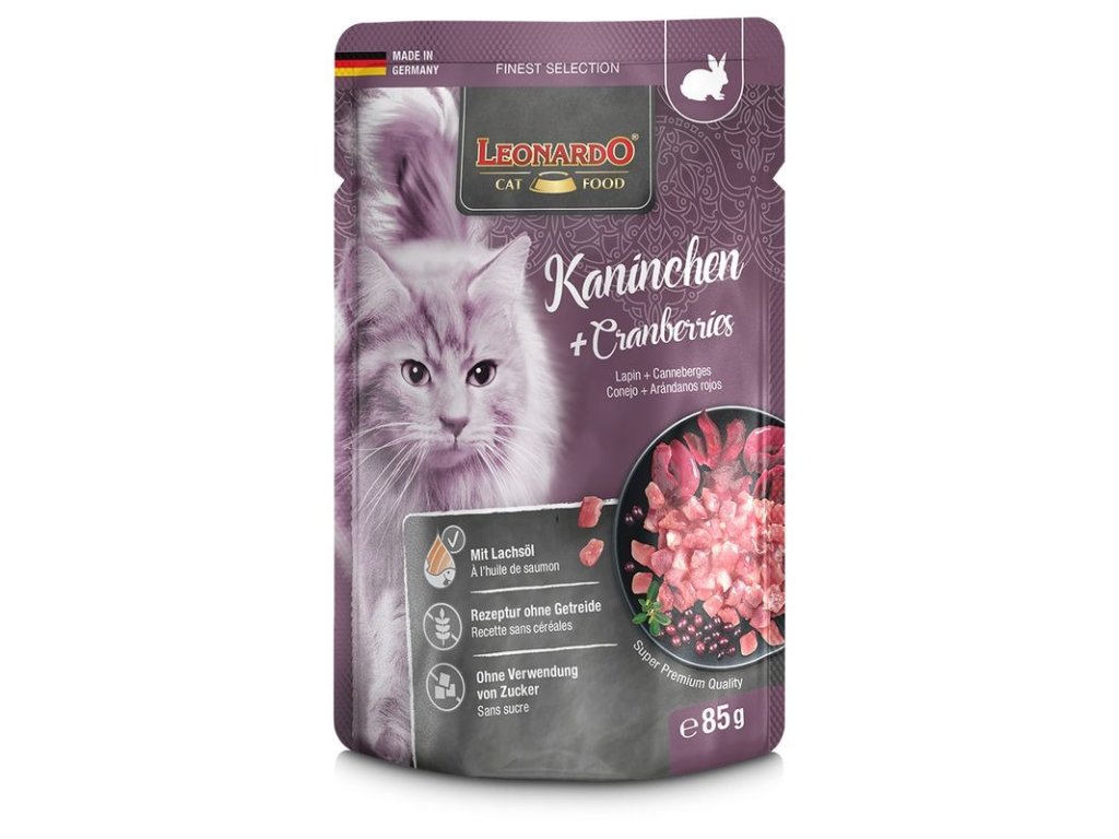 Kapsičky řady Leonardo “Finest Selection“ jsou dostupné v různých speciálně sestavených lahodných recepturách. Vysoce kvalitní kapsičky obsahují šetrně vařené šťavnaté maso, jsou vylepšené o pečlivě vybrané suroviny potravinářské kvality. Lososový olej poskytuje hodnotné Omega 3 nenasycené mastné kyseliny.