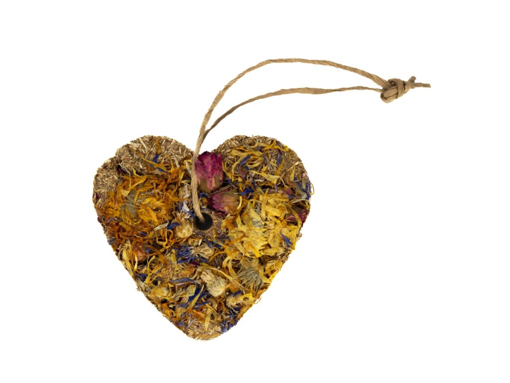 Dopřejte svému hlodavci voňavou a zdravou pochoutku! Toto ručně lisované bylinkové srdce je plné sušených lučních travin, květů měsíčku, chrpy a růže, které nejen krásně voní, ale také podporují přirozené okusování a trávení. Skvělá odměna i zpestření každodenního jídelníčku.