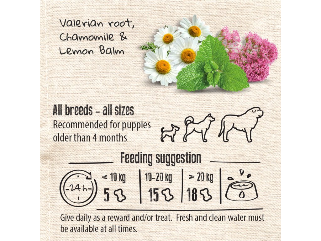 vhodné pro každodenní podávání i pro situace, kdy je pejsek ve stresu a potřebuje se zklidnit a uvolnit