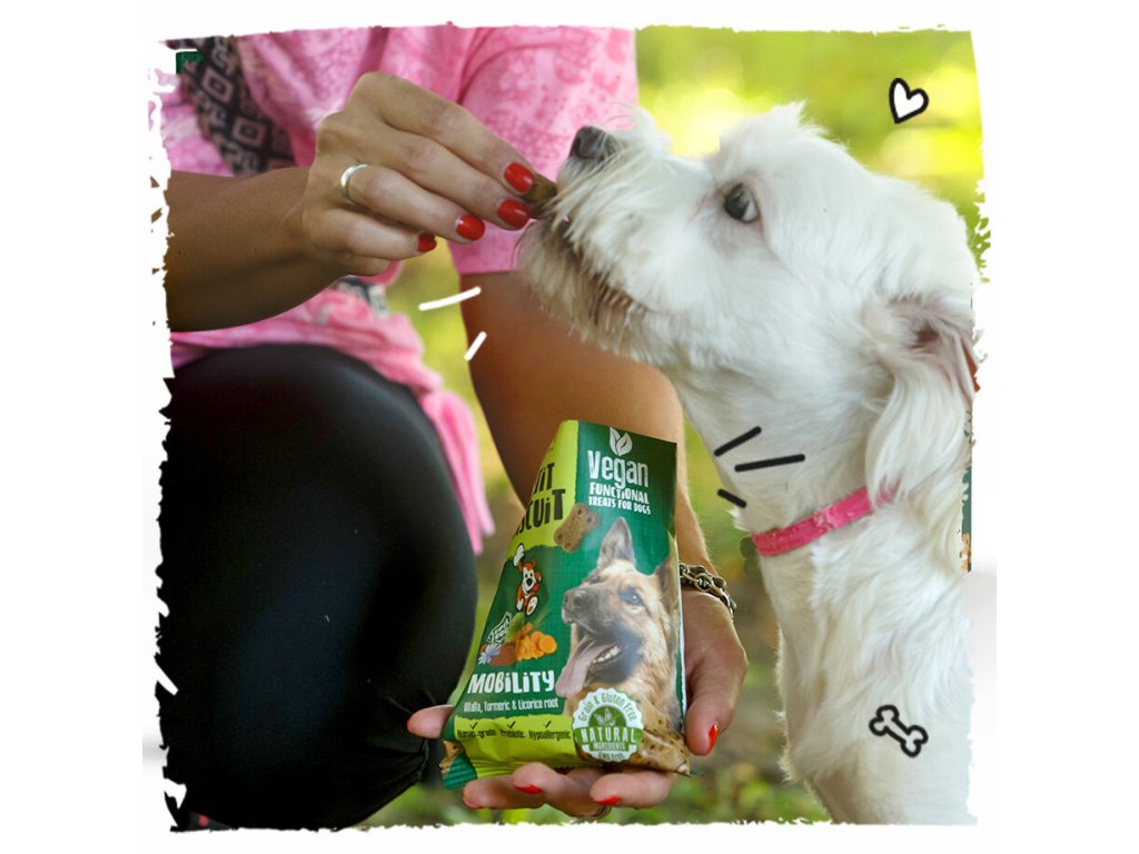Petit Biscuit jsou funkční pamlsky pečené v malých várkách z čistě veganských ingrediencí v potravinářské kvalitě. Receptura Mobility s vojtěškou, kurkumou a kořenem lékořice přirozeně podporuje zdraví pohybového aparátu psa a přispívá k celkové vitalitě.