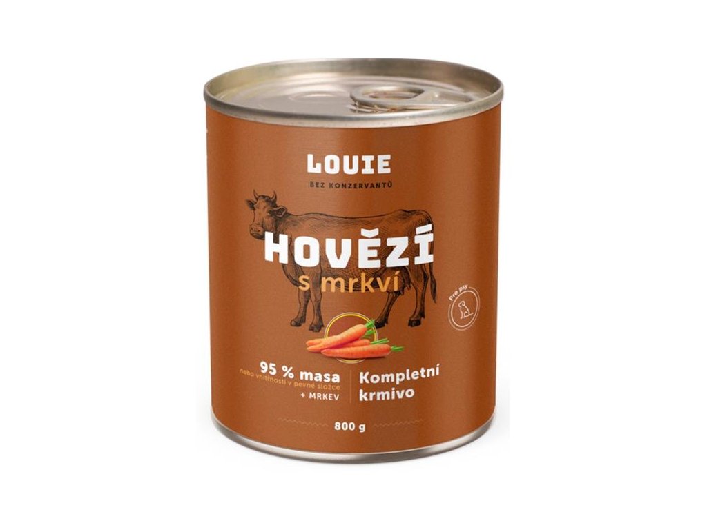 Složení: hovězí maso a vnitřnosti (játra, plíce) 95 %, mrkev 3 %, minerály a vitamíny 2 %. Podíl pevné složky min. 75 %.