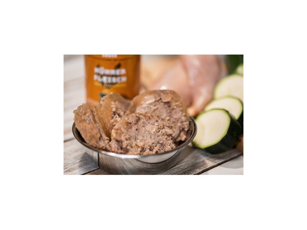 Šťavnaté kompletní krmivo v konzervě obsahuje 95 % mletého kuřecího masa v pevné složce. Zbylých 5 % obsahu tvoří cuketa, přidané vitamíny a minerály a rozemletý prášek z kuřecích kostí, který funguje jako přírodní zdroj vápníku a fosforu v přirozeném poměru. Rostlinná složka supluje obsah žaludku býložravé kořisti ve volné přírodě, dodává psům potřebné živiny a postará se o vstřebání šťávy, kterou maso během tepelné sterilizace uvolnilo.