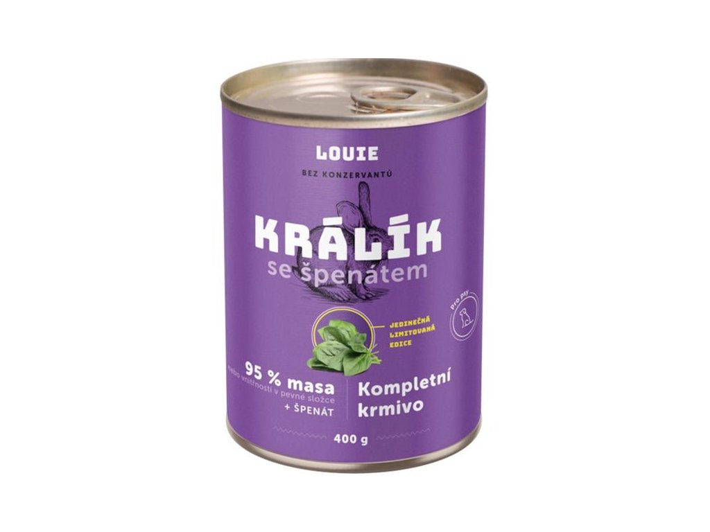 Louie konz.pro psy králik se špenátem 400g