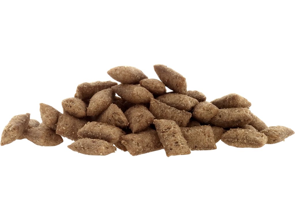 Složení: drůbeží maso 47 % (sušené kuřecí maso 38 %, drůbeží tuk 9 %), brambory, hrách, hovězí tuk, brusinky 1 %, minerální látky