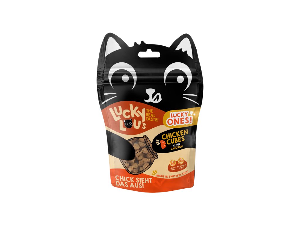 Lucky Ones Cubes jsou šťavnaté kostičky kuřecího masa, které se perfektně hodí pro časté odměňování a hru s vaší kočkou.