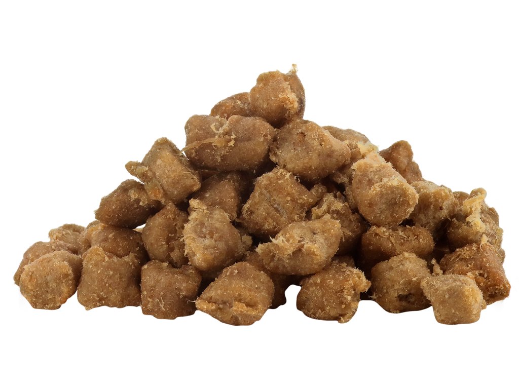 Složení: kuřecí maso 71,4 % (svalovina, škvarky, tuk, játra), brambory, glycerin, lignocelulóza, vaječný bílek 1 %, minerální látky, rozmarýnový extrakt