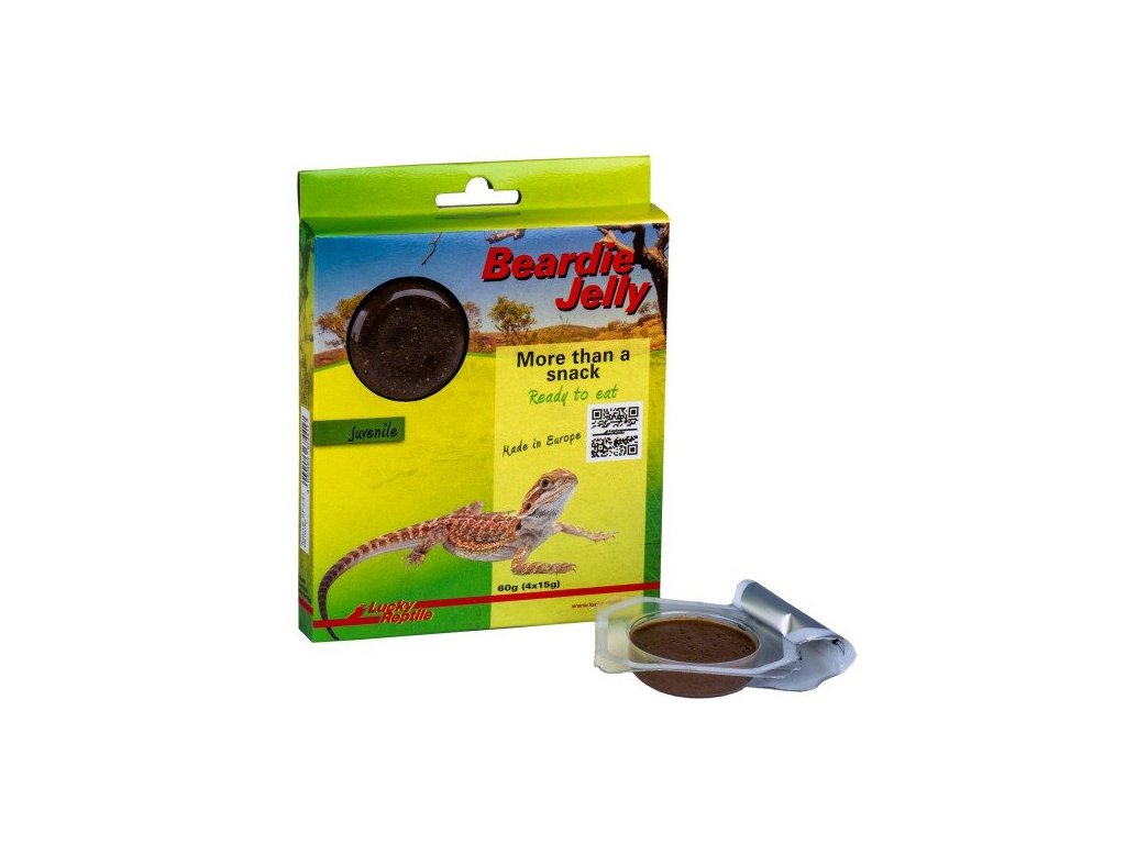Beardie Jelly je doplňkové krmivo ve formě želé speciálně vyvinuté pro agamy vousaté. Vyvážená receptura nabízí velmi širokou škálu surovin pro zdravou a vyváženou potravu. Snadno se dávkuje a uchovává.