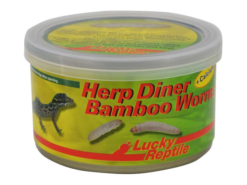 Larvy a červi jsou pro všechny hmyzožravé druhy plazů opravdu lákavé, protože jsou velmi výživní a mají větší obsah tuku. Přidaný sépiový prášek zajišťuje příznivý obsah vápníku. Bambusoví červi z řady konzervovaných krmiv Herp Diner jsou nabízeni bez přídavku dochucovacích a konzervačních prostředků.