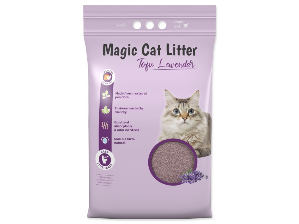Je zcela bez chemických přísad, netoxické a s úžasnou schopností absorpce vlhkosti. Hrudky můžete snadno spláchnout do toalety. S Magic Litter Tofu zajistíte své kočce čisté a zdravé prostředí, ve kterém se bude cítit skvěle. Jedno balení vydrží při používání jednou kočkou až 30 dnů.