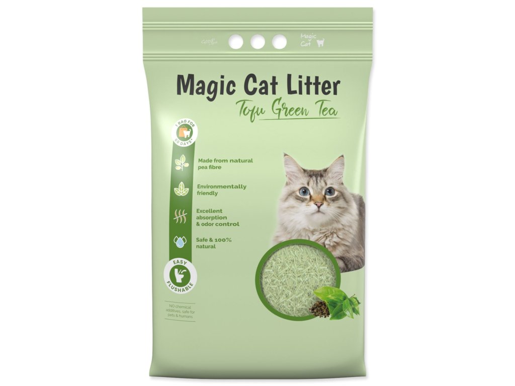 Je zcela bez chemických přísad, netoxické a s úžasnou schopností absorpce vlhkosti. Hrudky můžete snadno spláchnout do toalety. S Magic Litter Tofu zajistíte své kočce čisté a zdravé prostředí, ve kterém se bude cítit skvěle. Jedno balení vydrží při používání jednou kočkou až 30 dnů.