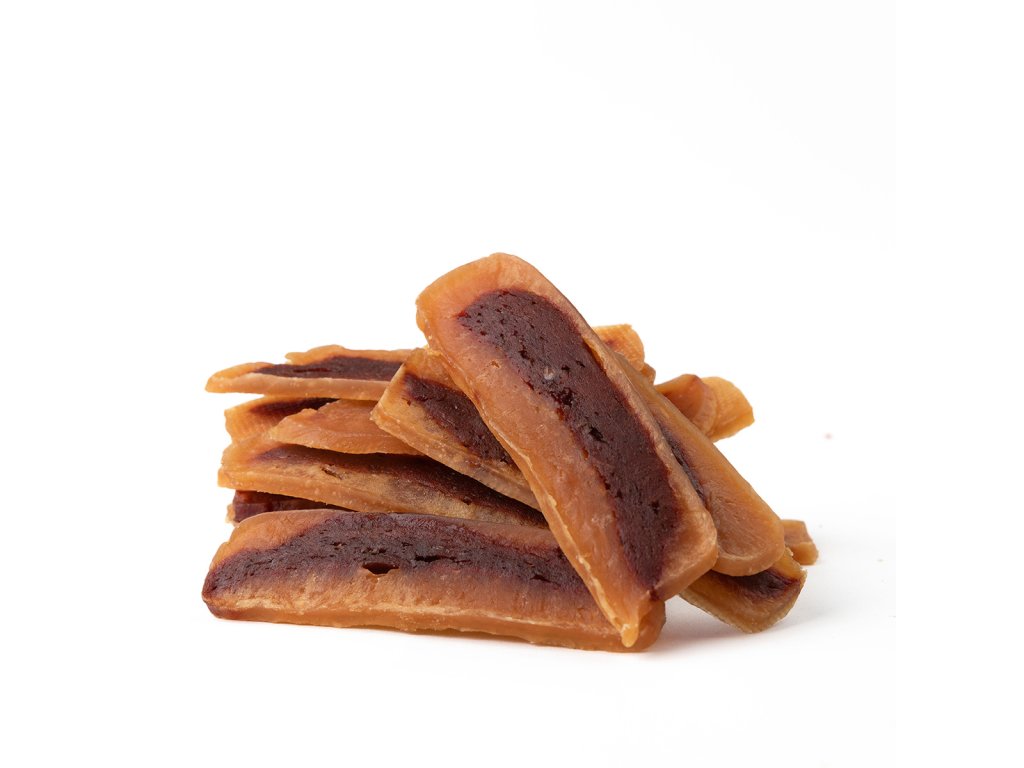 Tato 100% přírodní masová pochoutka kombinuje světlé rybí pásky s jemným kuřecím proužkem, přičemž uprostřed se nachází další vrstva s rybí příchutí. Měkké kuřecí snacky jsou ideální jako odměna za splněný povel, při hře, výcviku nebo jako doplněk stravy na cestách. Díky lehké stravitelnosti nezatěžují organismus a nemají negativní vliv na zuby ani dásně.