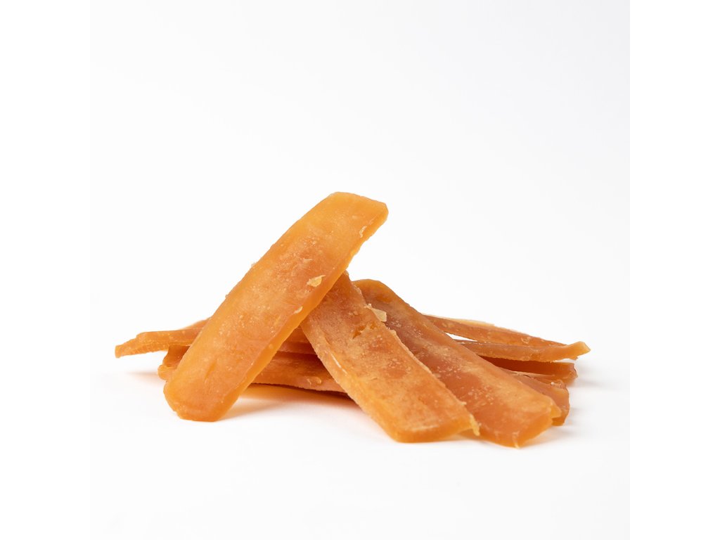 Tato 100% přírodní masová pochoutka kombinuje světlé rybí pásky s jemným kuřecím proužkem, přičemž uprostřed se nachází další vrstva s rybí příchutí. Měkké kuřecí snacky jsou ideální jako odměna za splněný povel, při hře, výcviku nebo jako doplněk stravy na cestách. Díky lehké stravitelnosti nezatěžují organismus a nemají negativní vliv na zuby ani dásně.