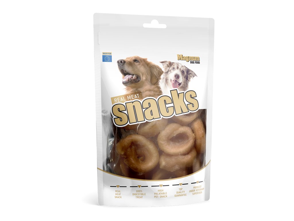 Měkká, přírodní masová pochoutka z kuřecího a rybího masa formovaná do středně velkých kroužků.