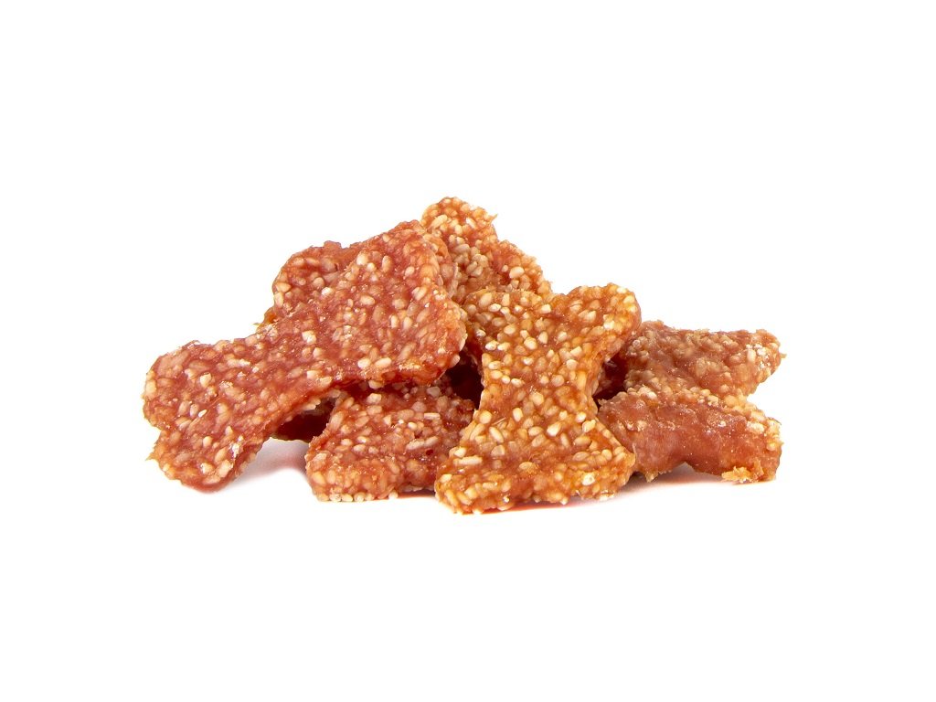 Tato pochoutka obsahuje 100% čisté, lahodné kuřecí maso, které je skvělou odměnou při hře, výcviku nebo jako doplněk stravy na cestách. Díky své lehké stravitelnosti nezatěžuje organismus a nemá negativní vliv na zuby ani dásně. Praktické balení s uzavíratelným zipem chrání pamlsky před vysycháním, takže zůstávají déle čerstvé a chutné.