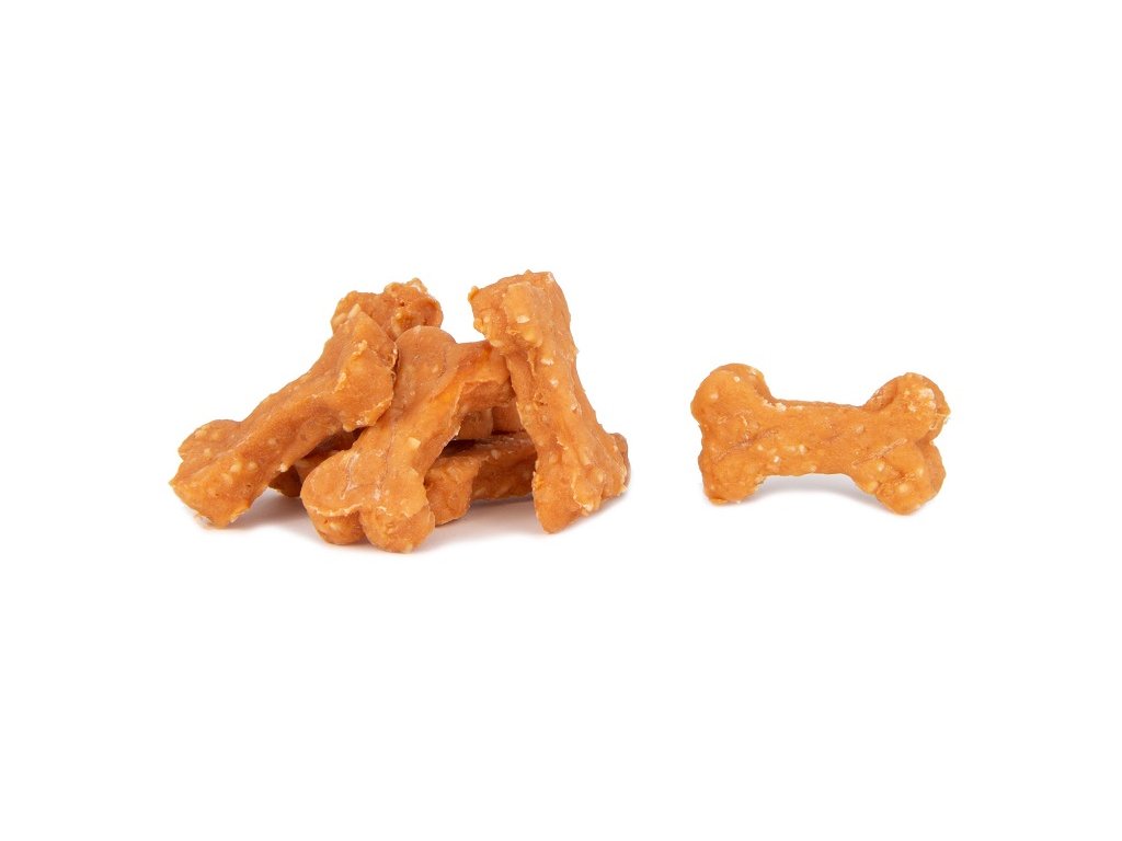 Tato pochoutka obsahuje 100% čisté, lahodné kuřecí maso, které je skvělou odměnou při hře, výcviku nebo jako doplněk stravy na cestách. Díky své lehké stravitelnosti nezatěžuje organismus a nemá negativní vliv na zuby ani dásně. Praktické balení s uzavíratelným zipem chrání pamlsky před vysycháním, takže zůstávají déle čerstvé a chutné.