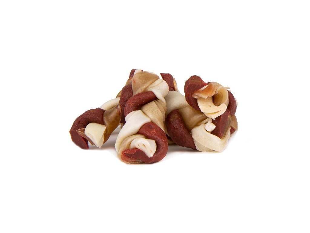 Malý, ale naducaný copánek o délce 6,5 cm kombinuje žvýkací bůvolí kůži s lahodným, voňavým masovým jerky, což z něj činí neodolatelnou pochoutku pro každého psa.