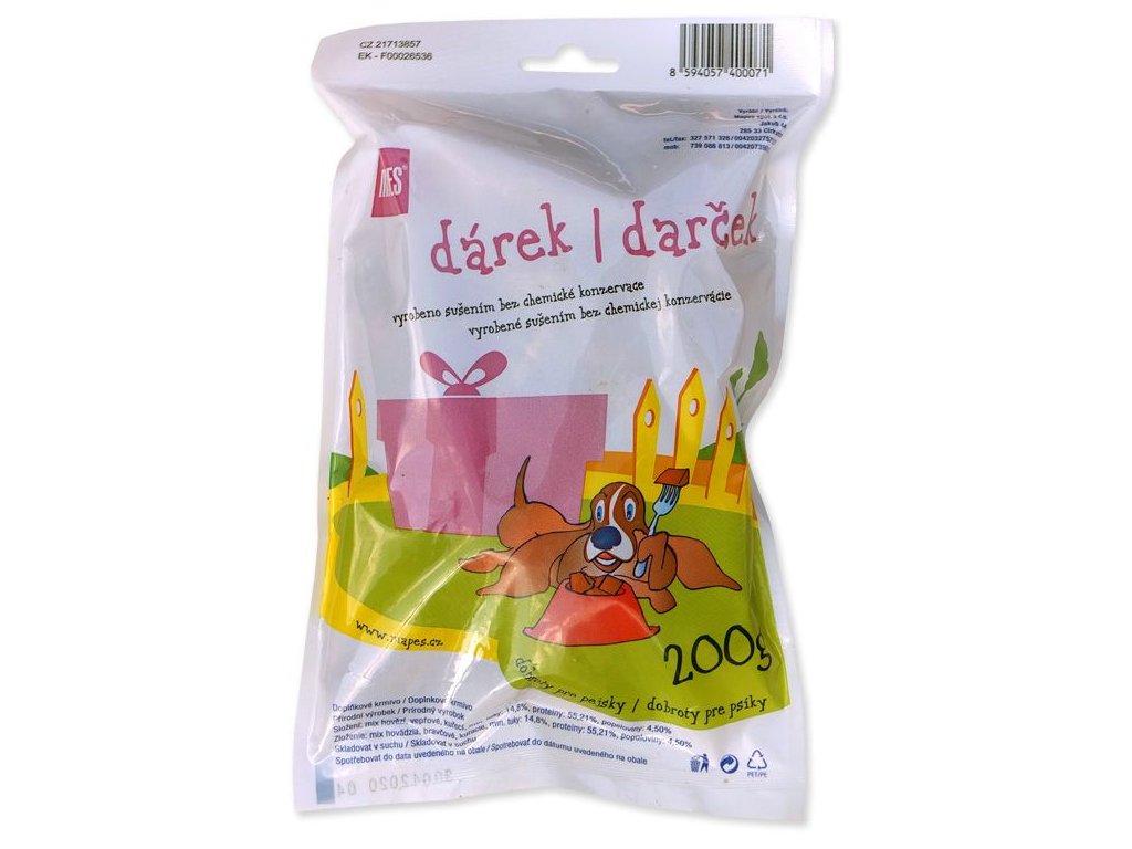 Dárek připravujeme z 6 různých našich druhů, jejich skladba je pokaždé jiná a je tak možné zjistit, co kterému pejskovi chutná.