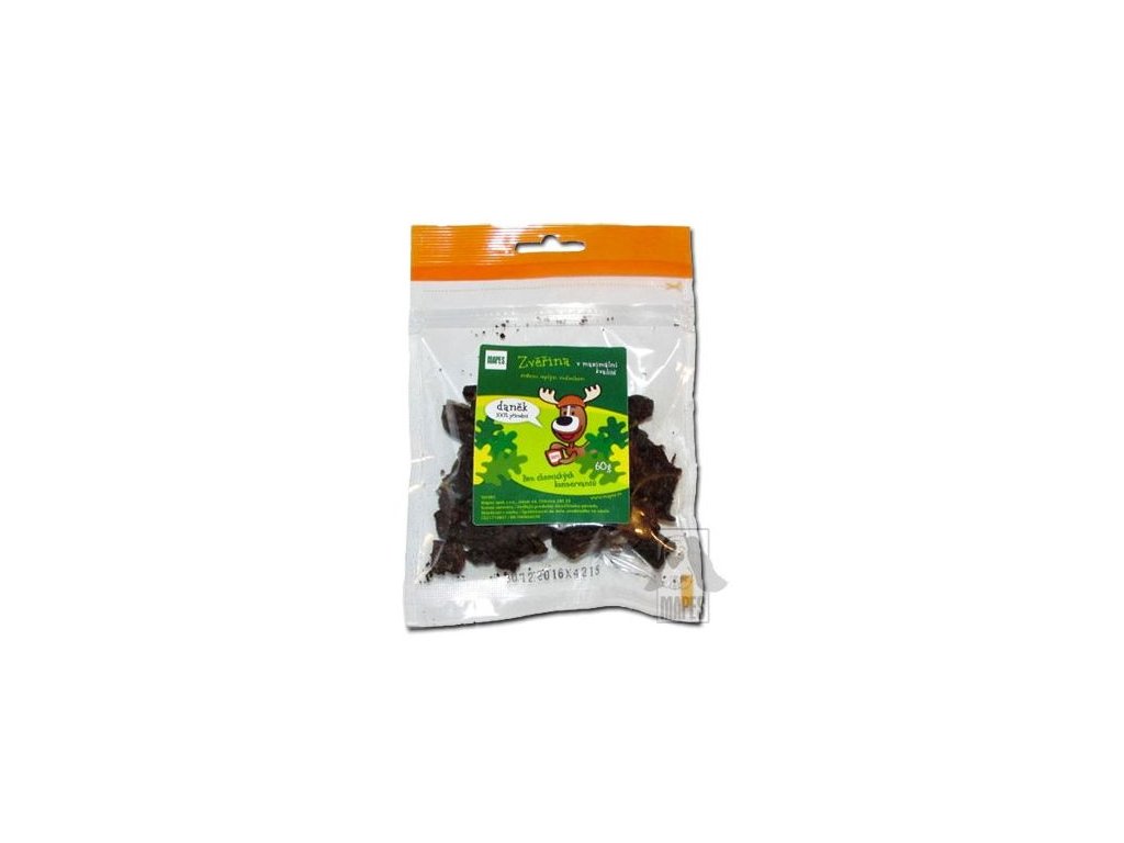 Lahodné, velmi chutné a jemné dančí maso od firmy Mapes. Malé kousky jsou pomalu sušeny, zachovávají si tak maximum živin i vůně. Daněk je libové a dietní maso, neobsahuje téměř žádný tuk. Maso pochází z českých oborních chovů. Je vykupováno čerstvé s nejvyššími požadavky na zdravotní stav a kvalitu.