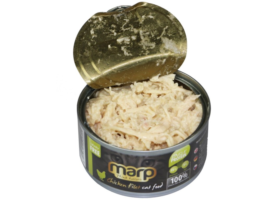 60 % Kuřecí prsa, 36,6 % Vývar, 2 % Slunečnicový olej, 1 % Minerály, 0,4 % Fosforečnan vápenatý.