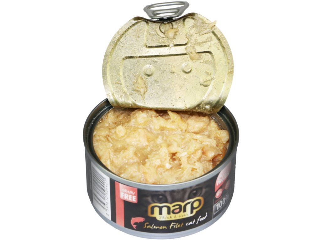 60% Filet z lososa, 36,8 % Vývar, 2 % Slunečnicový olej, 1 % Minerály, 0,2 % Uhličitan vápenatý.