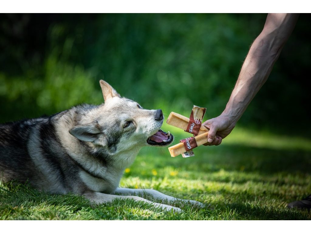 Krmný návod: Štěňatům doporučujeme podávat až po výměně zubů. Pamlsek je velmi tvrdý - psi by měli být pod dohledem při žvýkání pamlsků. Zajistěte dostatek čerstvé vody. Psa nepřekrmujte. Skladujte v suchu a chladu.