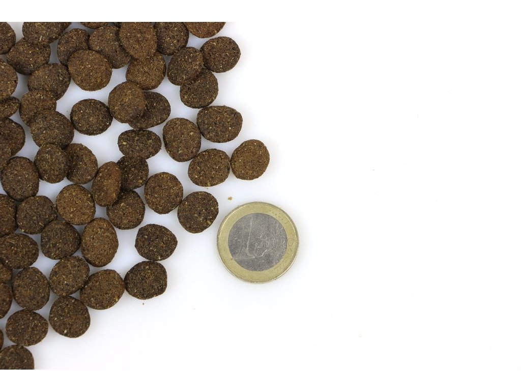 Hmotnost krmné dávky uvedená na obalu krmiva je orientační. Individuálně závisí na plemeni, věku, aktivitě, temperamentu, zátěži, genetických faktorech. Nepřekrmte svého psa v důsledku toho, že se necháte ovlivnit jeho chutí k jídlu a dychtivostí po granulích. Překrmení je nejčastější příčinou poruchy trávení. Denní krmnou dávku rozdělte štěňatům podle věku na 5-3 porce, dospělým jedincům na porce dvě. Krmivo můžete zkrmovat suché nebo navlhčené, navlhčené nenechávejte v misce déle než půl hodiny. Pes musí mít dostatek pitné vody. Na krmivo přecházejte postupně. Přechodu na nové krmivo věnujte několik dní, kdy budete míchat nové se stávajícím.