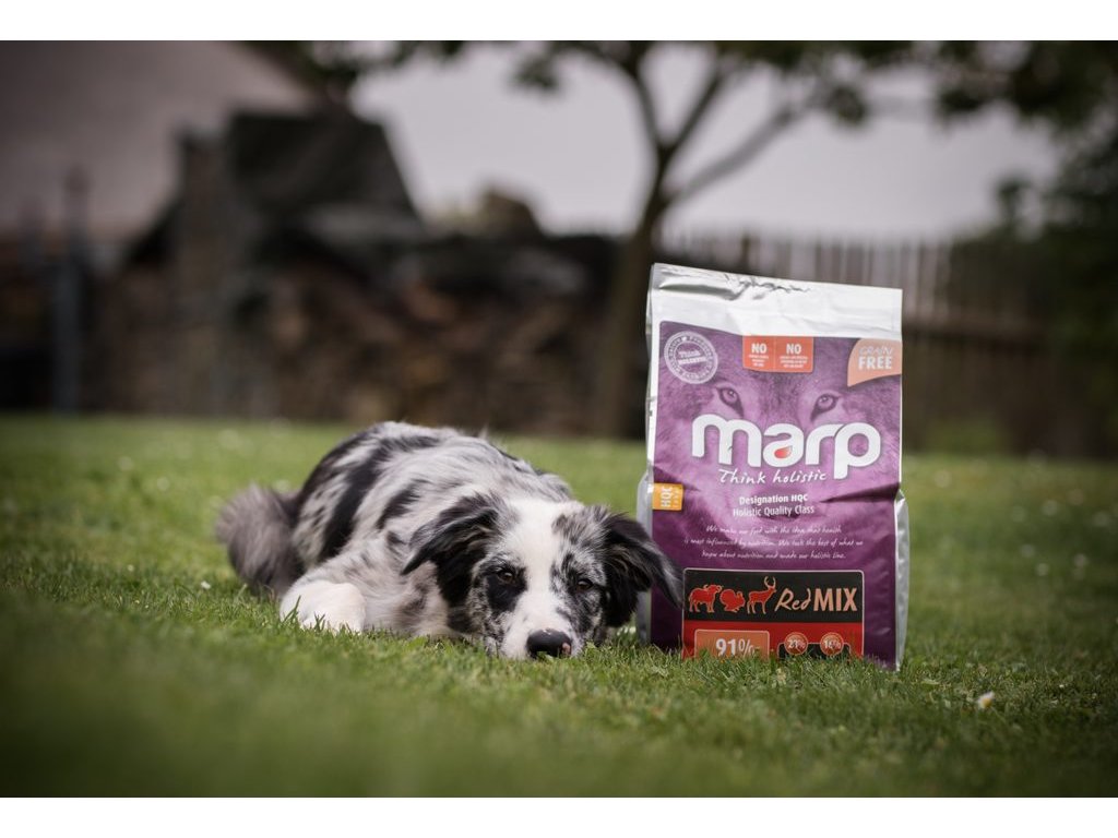 Krmivo Marp Red Mix s neobvyklými zdroji bílkovin jako je hovězí plemene Aberdeen Angus nebo zvěřina. Špičkové holistické krmivo s tmavým masem vhodné i pro alergické psy (hypoalergenní). Jedinečná bezobilná multiproteinová receptura s hovězím a krůtím masem, zvěřinou, sladkými brambory a spoustou bylinek. Receptura obsahuje prebiotika a komplex kloubní výživy - MSM, glukosamin a chondroitin. Marp je konzervován přírodními tokoferoly a rozmarýnem, neobsahuje umělé konzervanty, hormony ani barviva. Vhodné pro psy všech plemen a každého věku!