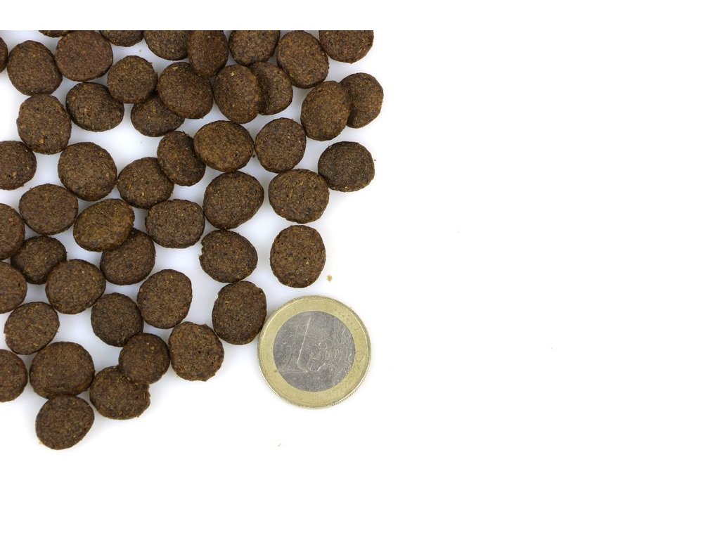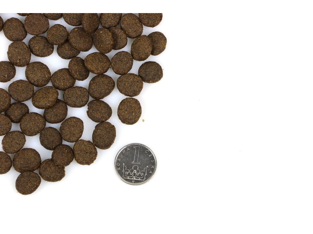 Analytické složky: Hrubá bílkovina 29 %, hrubé tuky 13 %, hrubá vláknina 3,5 %, hrubý popel 8 %, vlhkost 8 %, vápník 1,4 %, fosfor 0,9 %, omega 3 2,7 %, omega 6 1,1 %.
