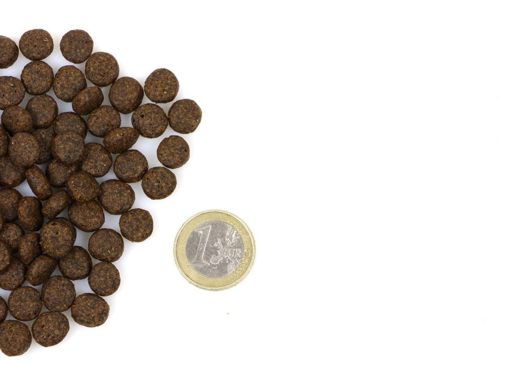 Hrubá bílkovina 33 %, hrubé tuky 15 %, hrubá vláknina 3 %, hrubý popel 7,5 %, vlhkost 7 %, vápník 1,3 %, fosfor 1 %, Omega 3 0,7 %, Omega 6 2,6 %, ME kcal/kg 3880