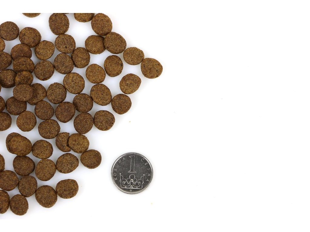 Hrubý protein 28 %, Hrubé tuky 15 %, Hrubá vláknina 3,5 %, Popeloviny 8 %, Vlhkost 8 %, Vápník 1,6 %, Fosfor 1,2 %, Omega 3 0,8 %, Omega 6 2,4 %, ME (Kcal/Kg) 3550