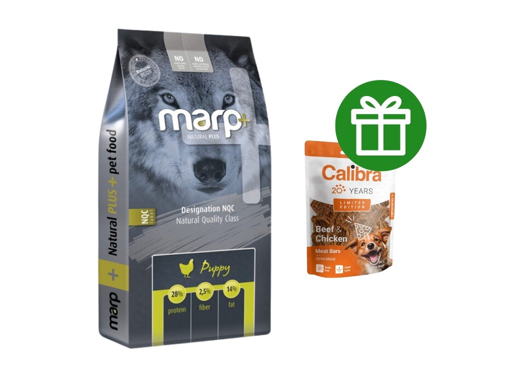 Nová řada Marp Natural Plus přináší i jednu zbrusu novou recepturu. A tou je čistokrevná receptura pro štěňata s názvem Marp Natural Plus Puppy. Je postavená na sušeném kuřeti a kuřecím tuku a má velmi jednoduché složení. Tato receptura má ideální výživový profil pro štěňata všech plemen a ideální poměr vápníku a fosforu pro štěňata velkých plemen. Složení jsme navíc obohatili o lněné semínko, které působí velmi blahodárně na srst a také o sušenou čekanku, bohatý zdroj fruktooligosacharidů. I pro novou řadu Natural Plus platí, že je postavená na kvalitních surovinách, od lokálních producentů.