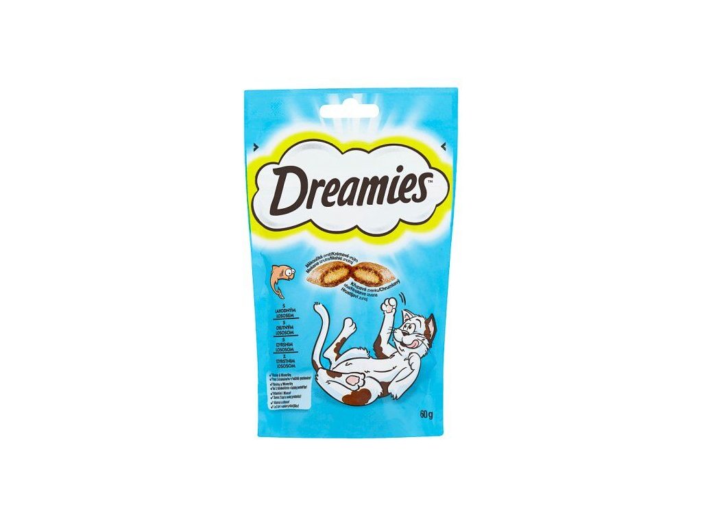 Dreamies kočka pochoutka s lososem je lahodný pamlsek pro Vaši kočku s jedinečnou příchutí. Krémová náplň v křupavém obalu je přesně to pravé pro všechny kočičí mlsouny. Praktické uzavíratelné balení zachová obsah vždy čerstvý. Křupavá část má dentální funkci, lahodný krém zase potěší mlsný jazýček. Vhodné jak pro dospělé kočky, tak pro koťata a mladé kočky.