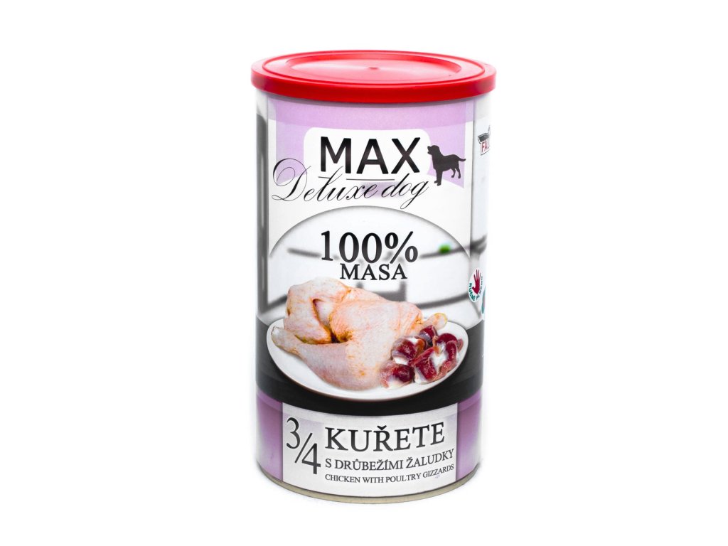Max Deluxe Dog 3/4 kuřete s žaludky 1200g