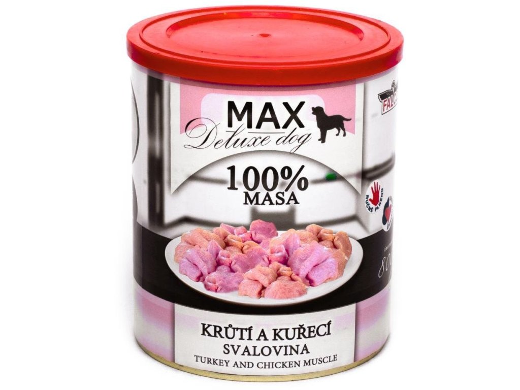 Max Deluxe Dog Krůtí a kuřecí svalovina konzerva pro psy 800g