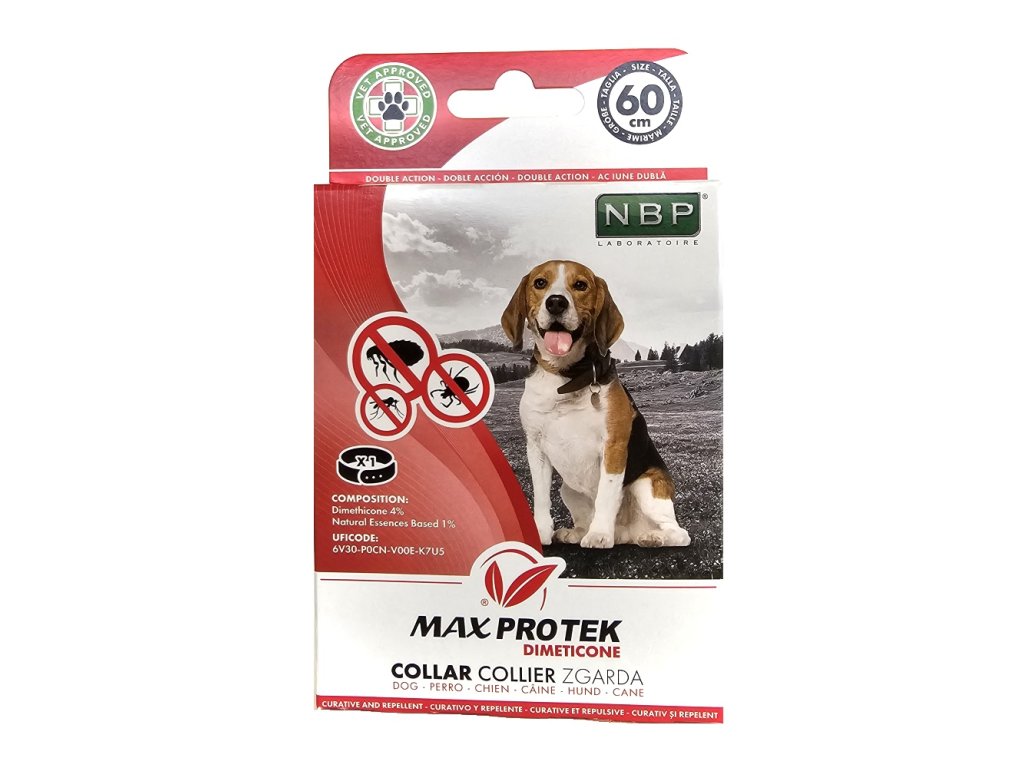 Přírodní repelentní fluorescenční obojek pro psy velkých plemen s dvojitým účinkem.Chrání proti parazitům a eliminuje ty, které se v srsti nachází pomocí látky dimethikon, který účinně imobilizuje parazity tím, že je obalí nepropustným filmem, což vede k jejich zadušení a umožňuje jejich snadné odstranění pouhým vyčesáním.