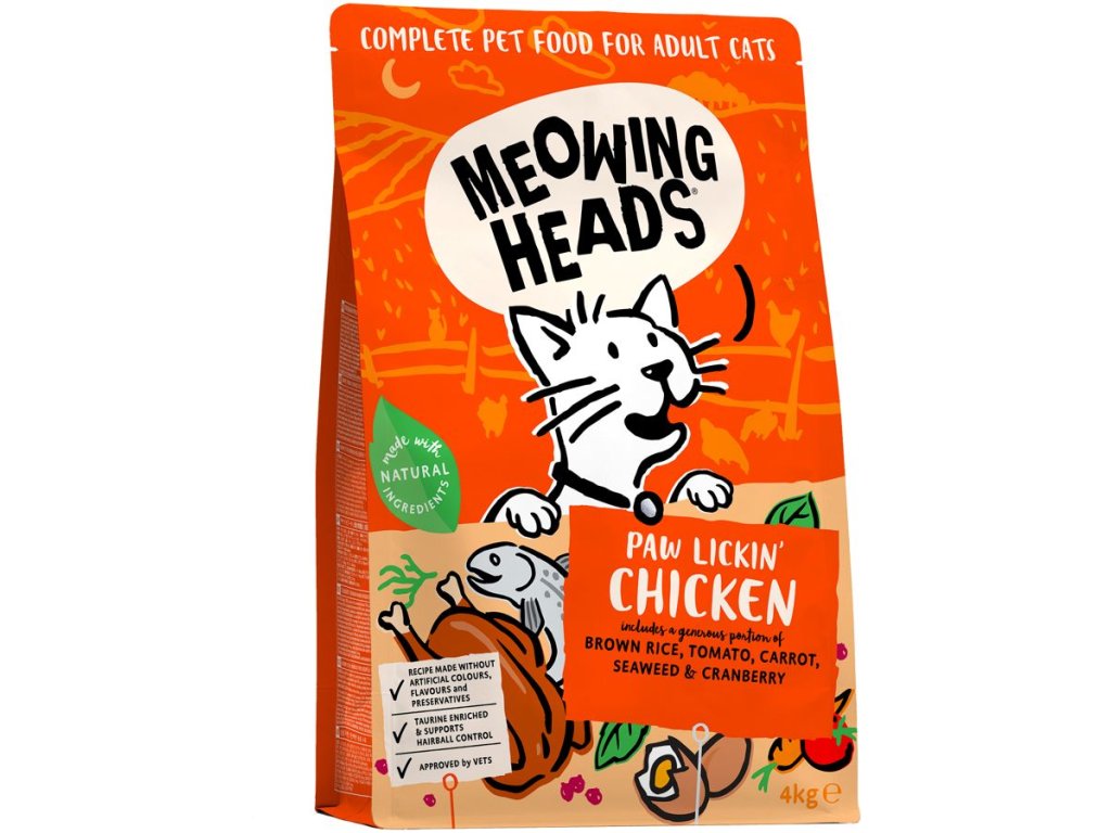 Kompletní suché krmivo MEOWING HEADS Paw Lickin’ Chicken pro dospělé kočky.