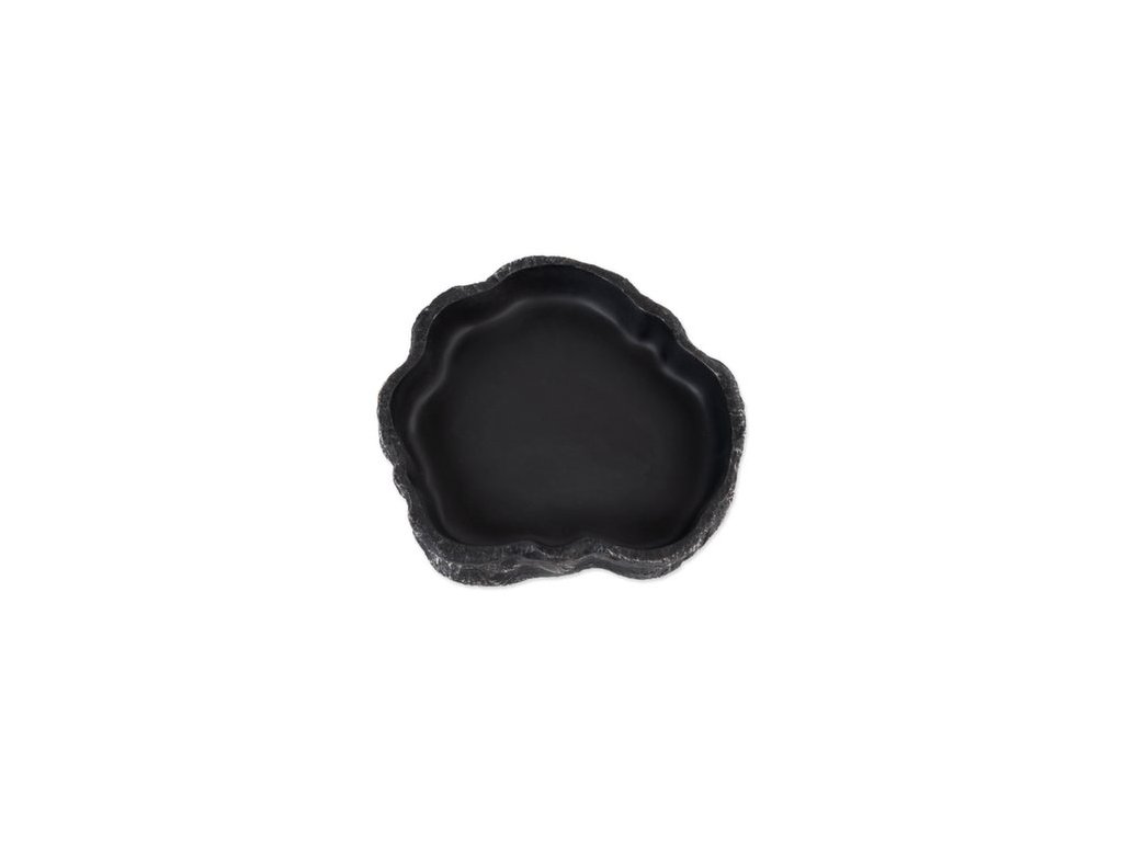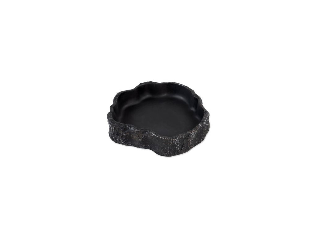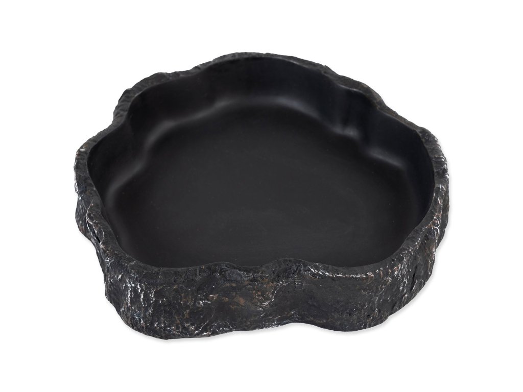 Miska na vodu či krmivo pro plazy, obojživelníky a další druhy zvířat, v černém designu.