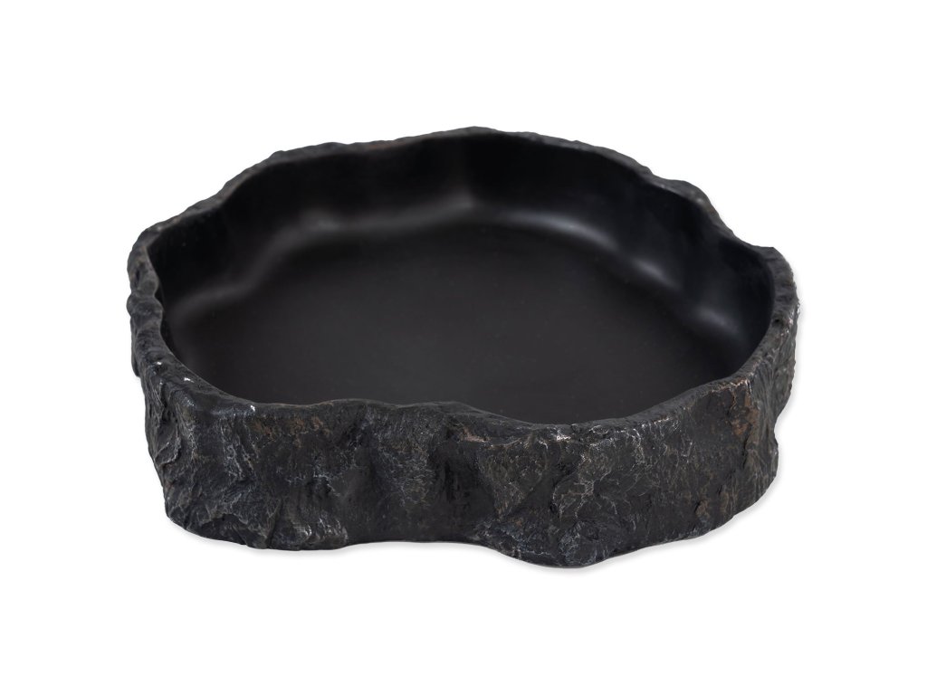 Miska na vodu či krmivo pro plazy, obojživelníky a další druhy zvířat, v černém designu.