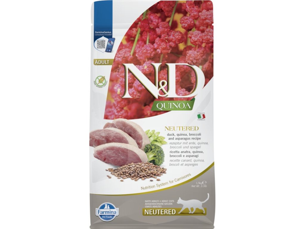 N&D Quinoa CAT Neutered Duck & Broccoli & Asparagus 1,5kg
