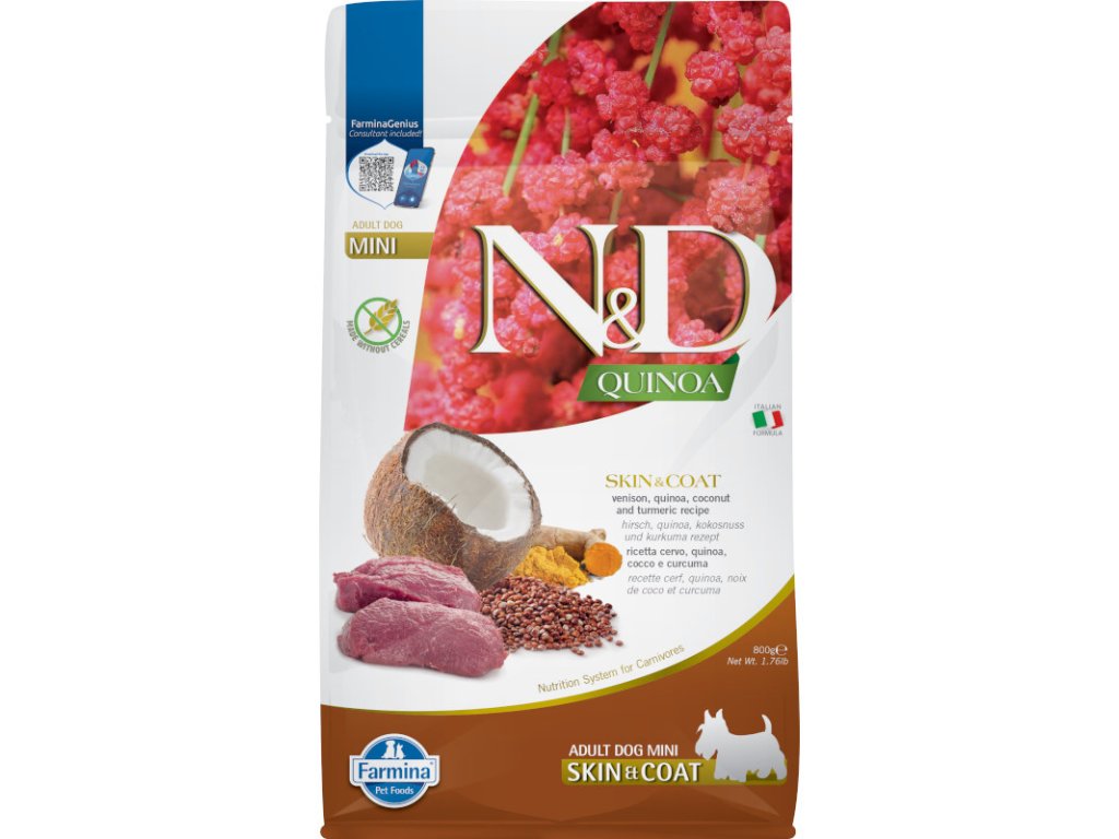 N&D Quinoa Dog Adult Mini Skin & Coat Grain Free Venison & Coconut 0,8 kg