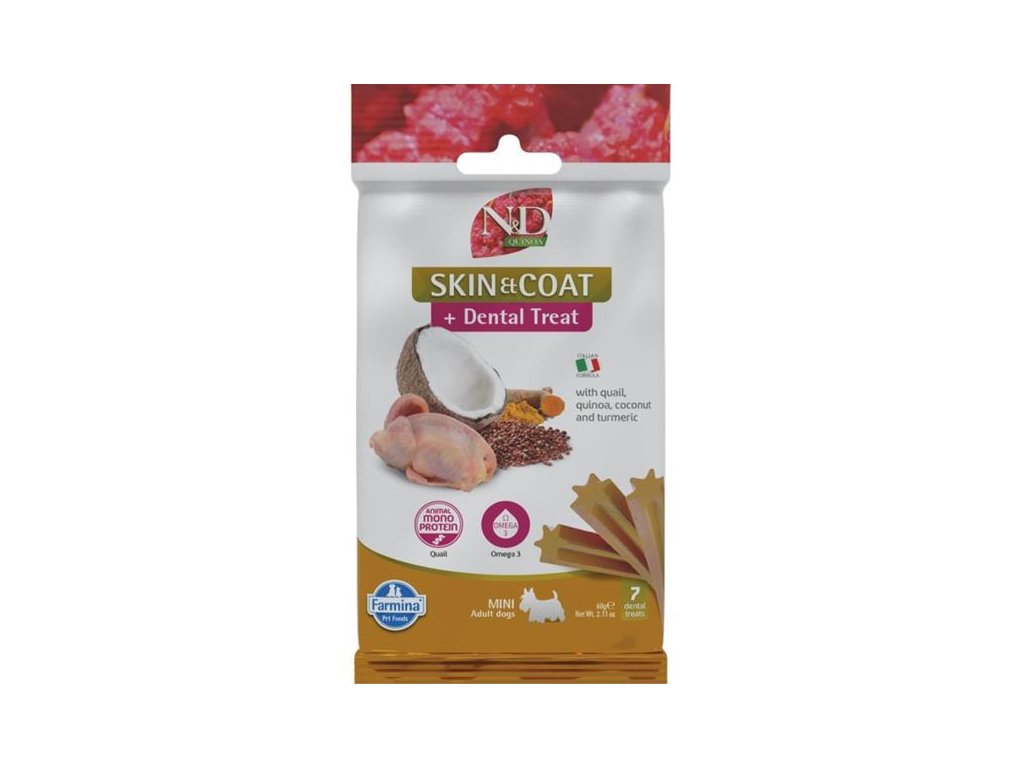 N&D QUINOA Dog Dental Snack Skin & Coat Quail Mini 60 g