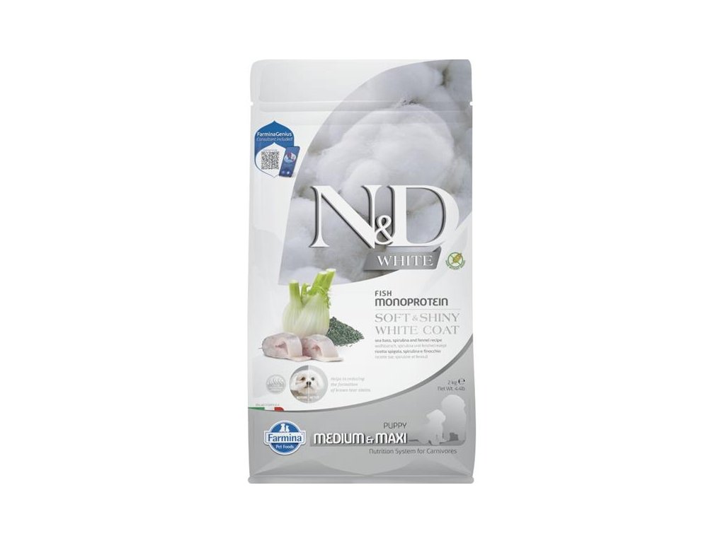 N&D WHITE Dog GF Sea Bass, Spirulina & Fennel Puppy Medium & Maxi 2 kg