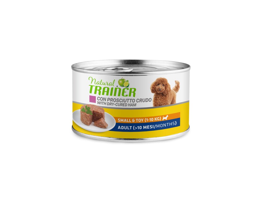 Konzerva plná plnohodnotných ingrediencí od firmy Natural Trainer zaručeně potěší každého psa. Je určena pro dospělé psy malých plemen. Bílkovinovou složkou je zde sušená šunka bohatá na minerální látky jako je vápník, zinek, hořčík, draslík, fosfor, tuky jako kyselina olejová a linolová, dále na bílkoviny s vysokou biologickou hodnotou a vitaminy skupiny B, zejména thiamin, niacin, riboflavin a vitamin B2. Udělejte radost svému mazlíčkovi a sáhněte po kvalitní mokré stravě od firmy Natural Trainer.
