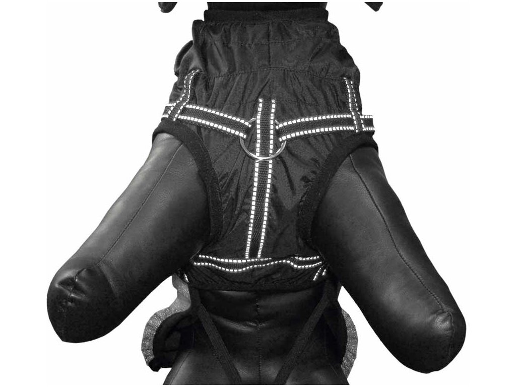 S integrovaným nylonovým postrojem s plynule nastavitelnou délkou. Funkčním materiálem jsou prodyšné, ale nepromokavé syntetycké vlákna, které dokáží udržet psa v suchu a teple i po dlouhé hodiny tréninku.