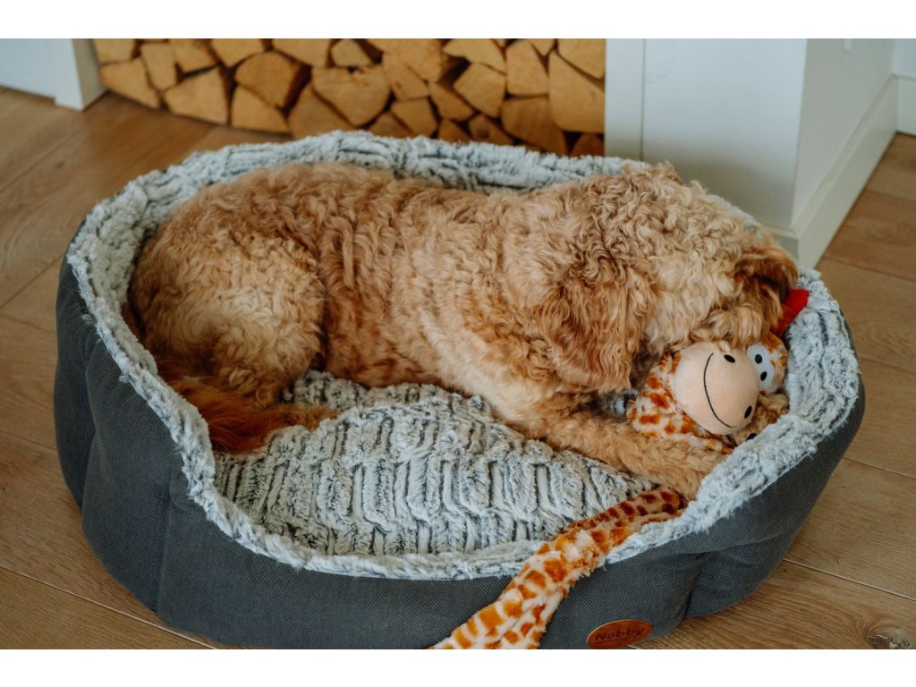 Velmi kvalitní oválný pelíšek pro malé psy s oboustranným polštářem. Barva šedá.