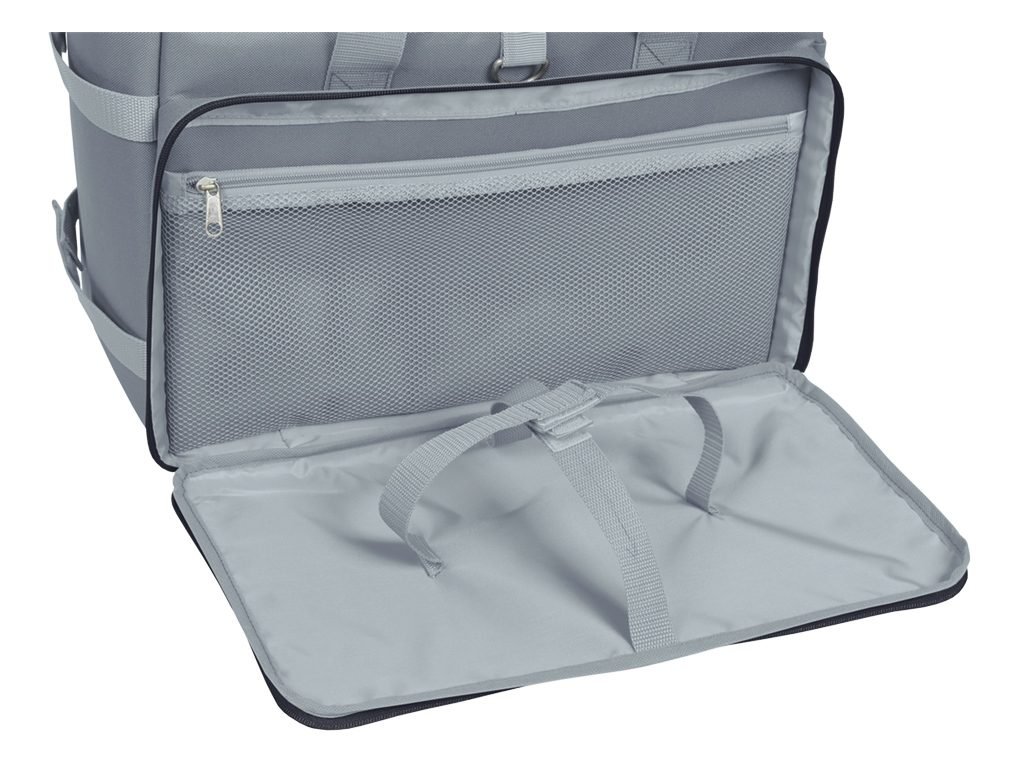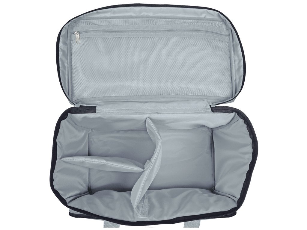 S organizérem můžete konečně ukládat veškeré doplňky pro domácí mazlíčky na jednom místě. Uvnitř tašky jsou nastavitelné rozdělovače s kapsou ze síťoviny a popruhy pro připevnění misky vpředu. Na boku je popruh pro připevnění deky o velikosti až 100 x 80 cm a přihrádka vzadu např. na doklady.