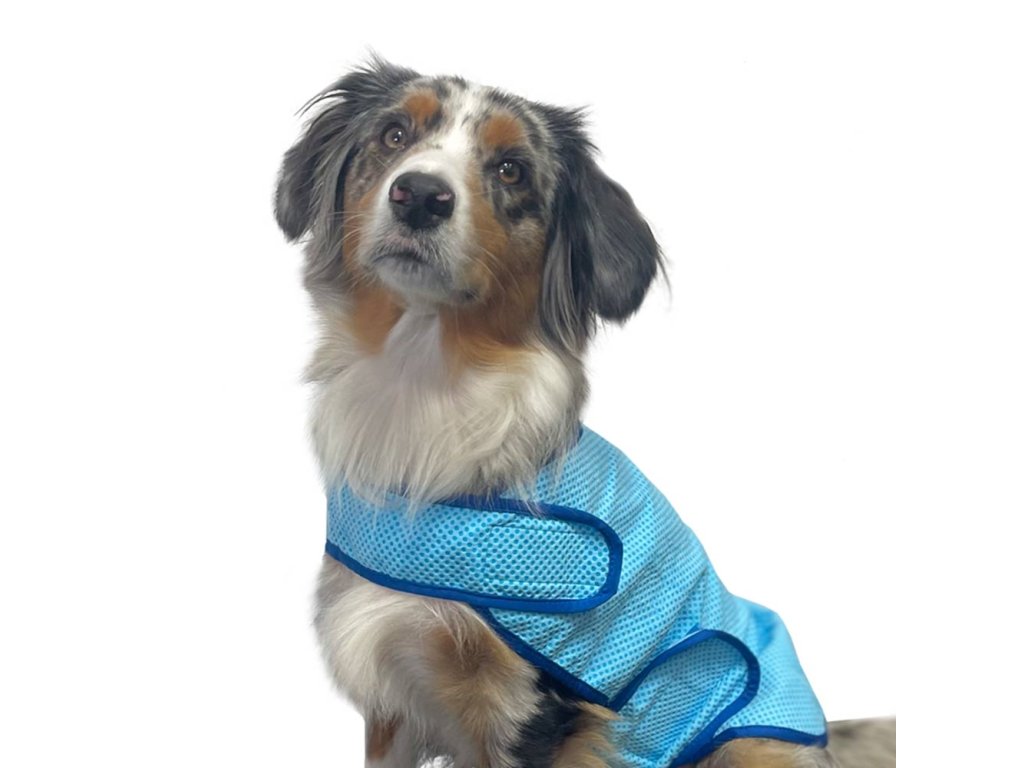 Chladicí obleček Nobby pro velká plemena psů, na podporu termoregulace při zvýšené aktivitě. Vesta ochlazuje psa odpařováním vody a lze ji používat opakovaně. Udržuje stálou teplotu těla při sportu, tréninku i během soutěže. Vhodná i pro starší psy.