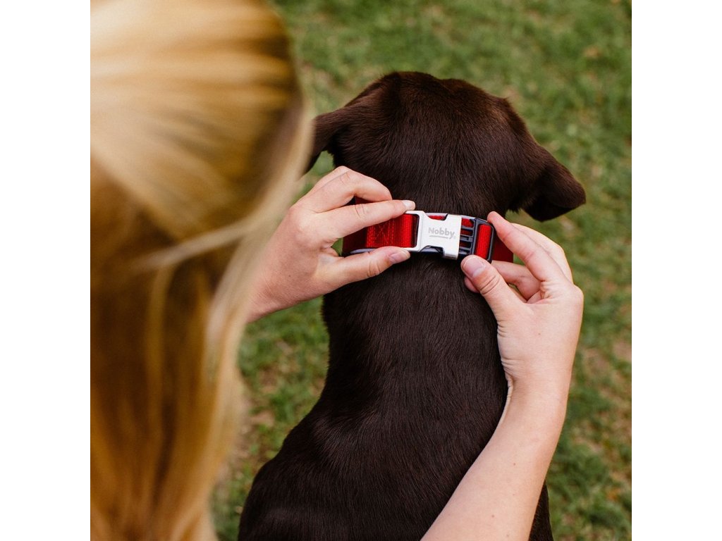 Velmi kvalitní neoprénový obojek Nobby v krásném elegantním provedení. Vrchní vrstva obojku je z nylonu a vzhledově působí velmi elegantně. Neoprénová podšívka je šetrná k srsti psa. Přezka na zapínání je vyrobená z leštěného kovu a plastu.