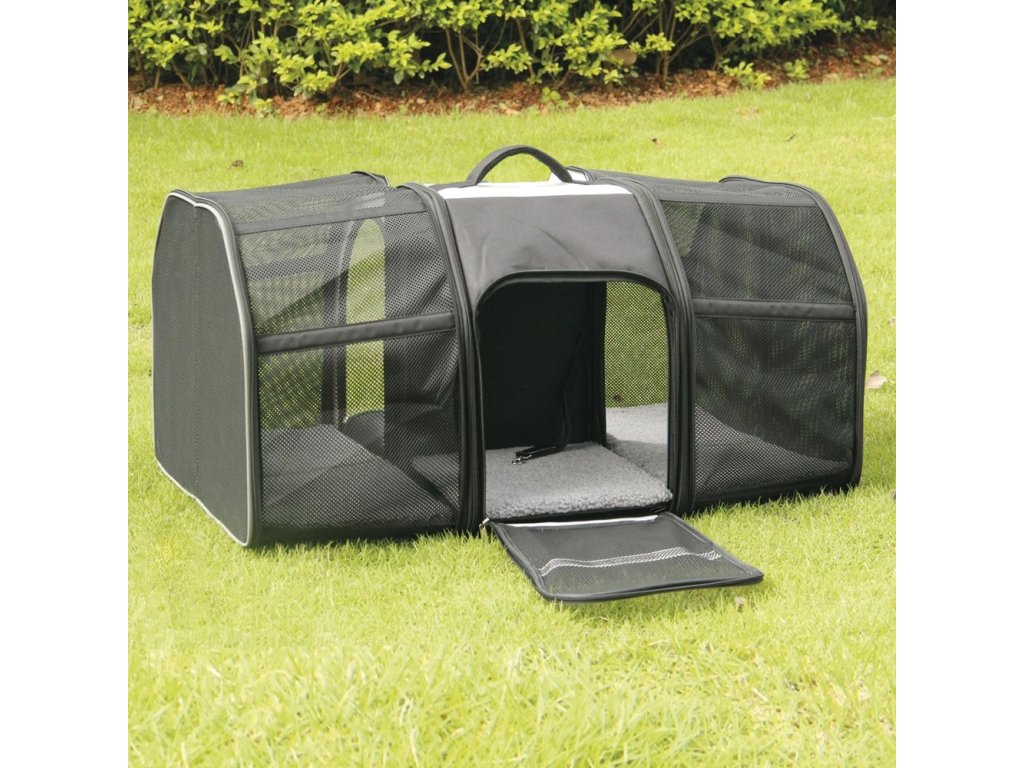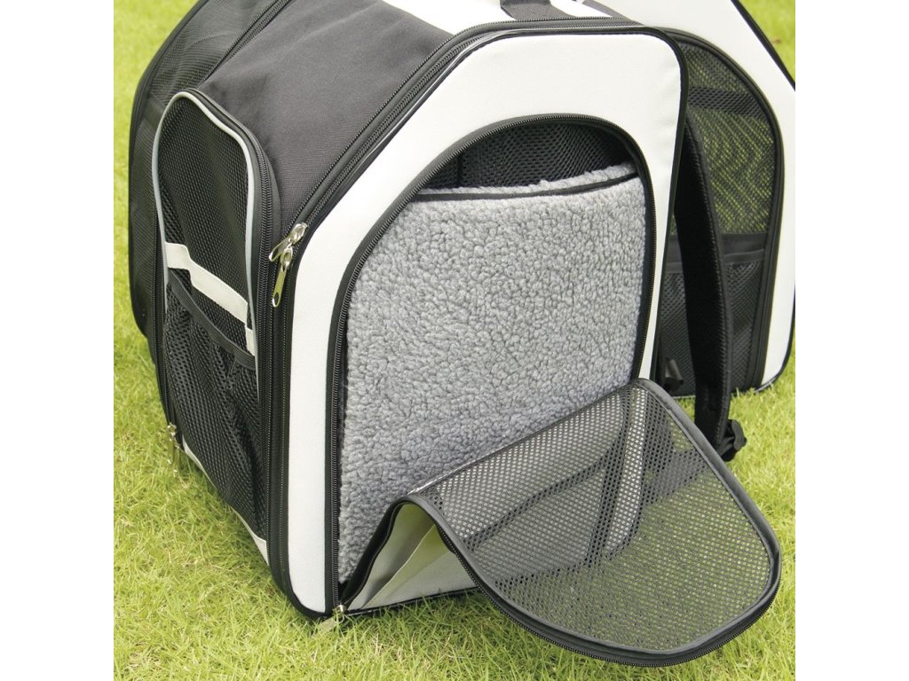 Tento pevný batoh značky Nobby je vyrobený z odolného mikrovlákna je ideální na delší výlety. Skládací boční panely ze síťoviny přemění batoh na robustní box s velkým objemem, zatímco tři vstupy lze použít v různých směrech jako tunel pro domácí mazlíčky. Velký vstupní otvor vpředu a možnost úplného otevření obou bočních částí zajistí, že se váš mazlíček snadno dostane dovnitř a ven.